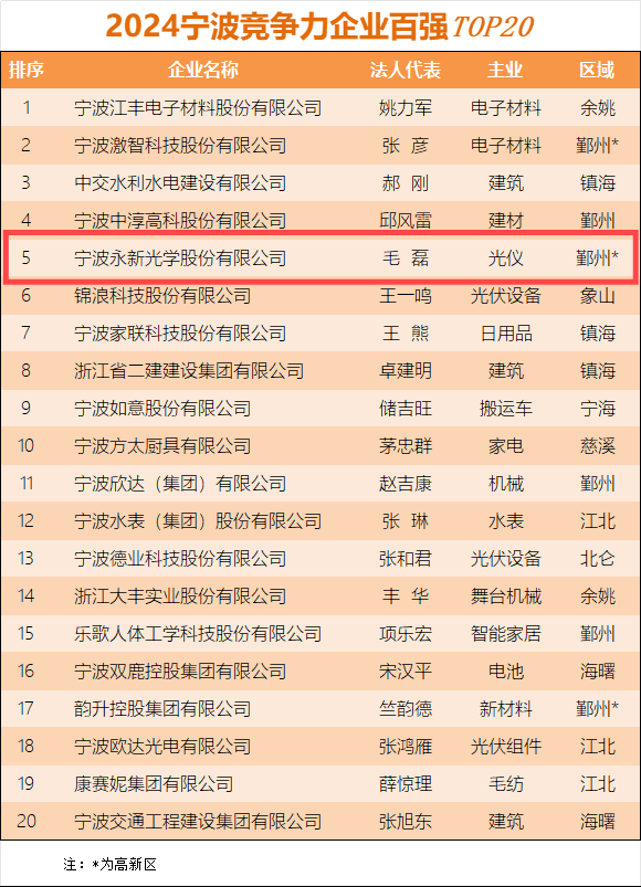 2024寧波競(jìng)爭(zhēng)力企業(yè)百?gòu)?qiáng):寧波永新光學(xué)股份有限公司