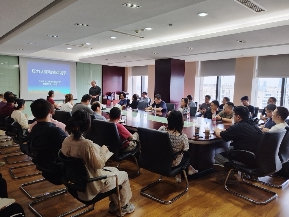 為了幫助員工理解壓力的本質(zhì)和情緒調(diào)節(jié)的方法,關(guān)愛員工身心健康,增強(qiáng)心理保健意識,學(xué)會科學(xué)調(diào)適心理,緩解心理壓力,10月16日下午,集團(tuán)公司攜手投資公司、東元創(chuàng)投、信紀(jì)公司、電子行業(yè)協(xié)會、科寧達(dá)公司、東旭公司等7家公司50余位干部員工在公司22樓會議室開展了《壓力認(rèn)知與情緒調(diào)節(jié)》培訓(xùn)會。此次培訓(xùn)在上級工會大力支持下,經(jīng)過精心組織和籌劃,特別邀請了寧波大學(xué)陳朝陽教授及團(tuán)隊(duì)成員為我們授課。